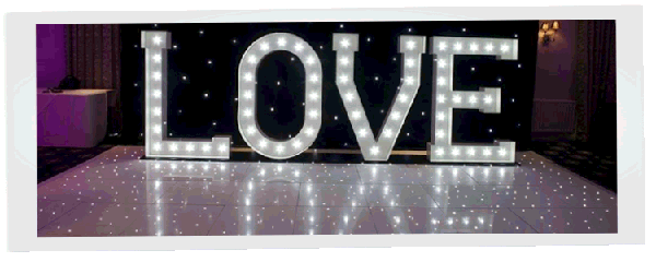 Love Letters Say it with words! These glamorous light-boxes will dazzle your guests. 3ft - £200 5ft - £399 Ideal for Weddings and Engagement Parties |